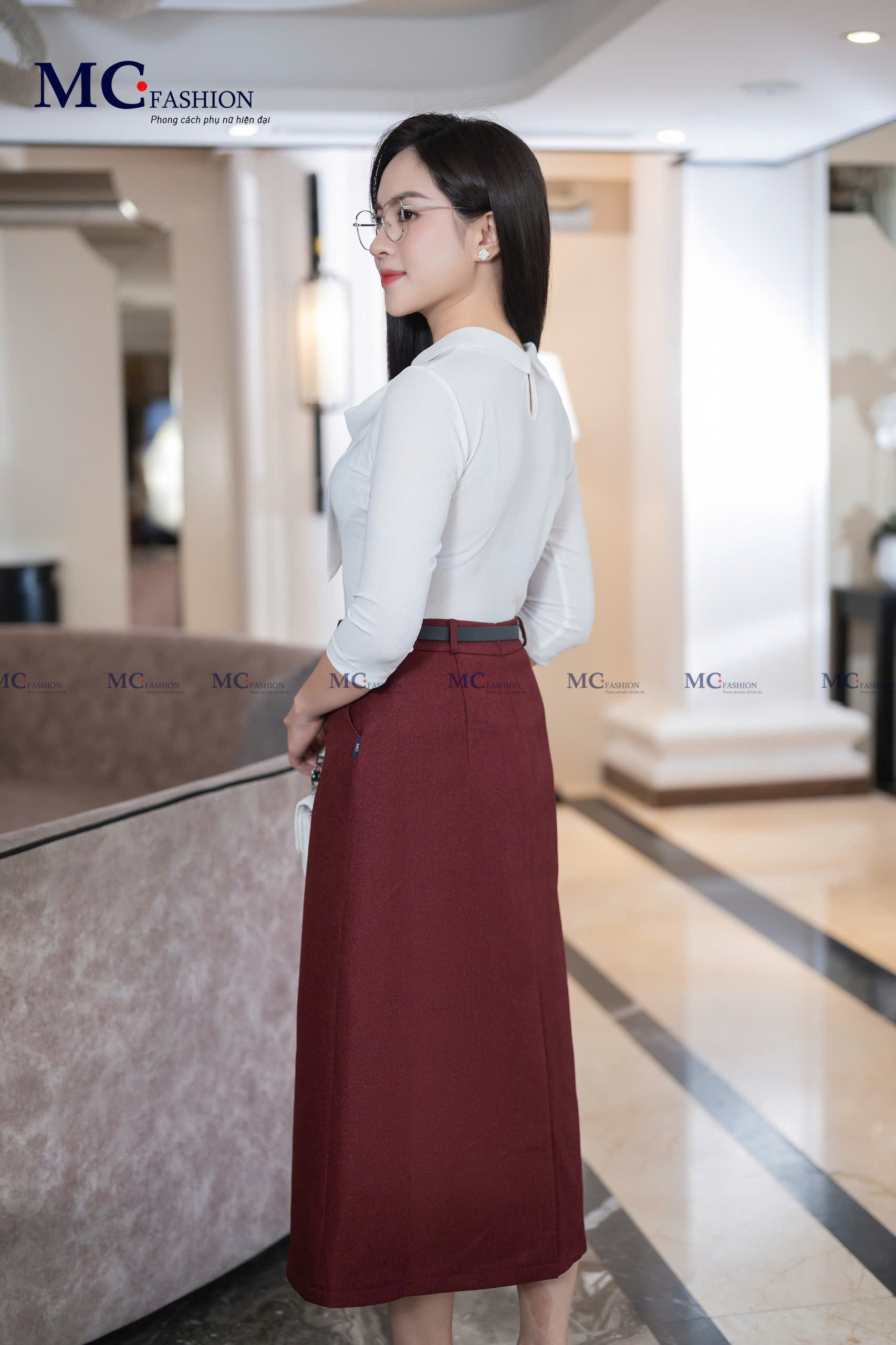 • Trắng thanh khiết, dễ phối chân váy hoặc quần tây.