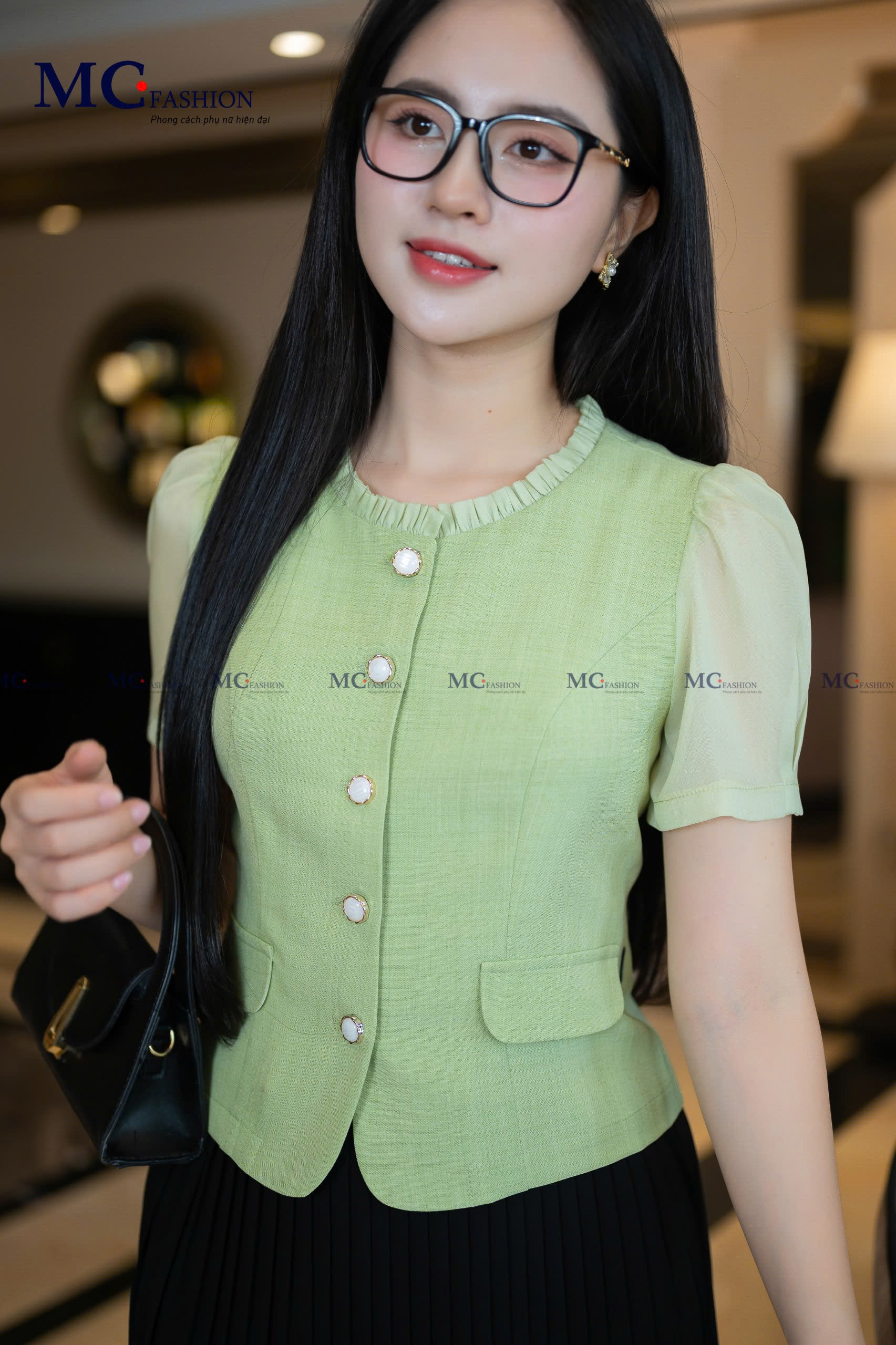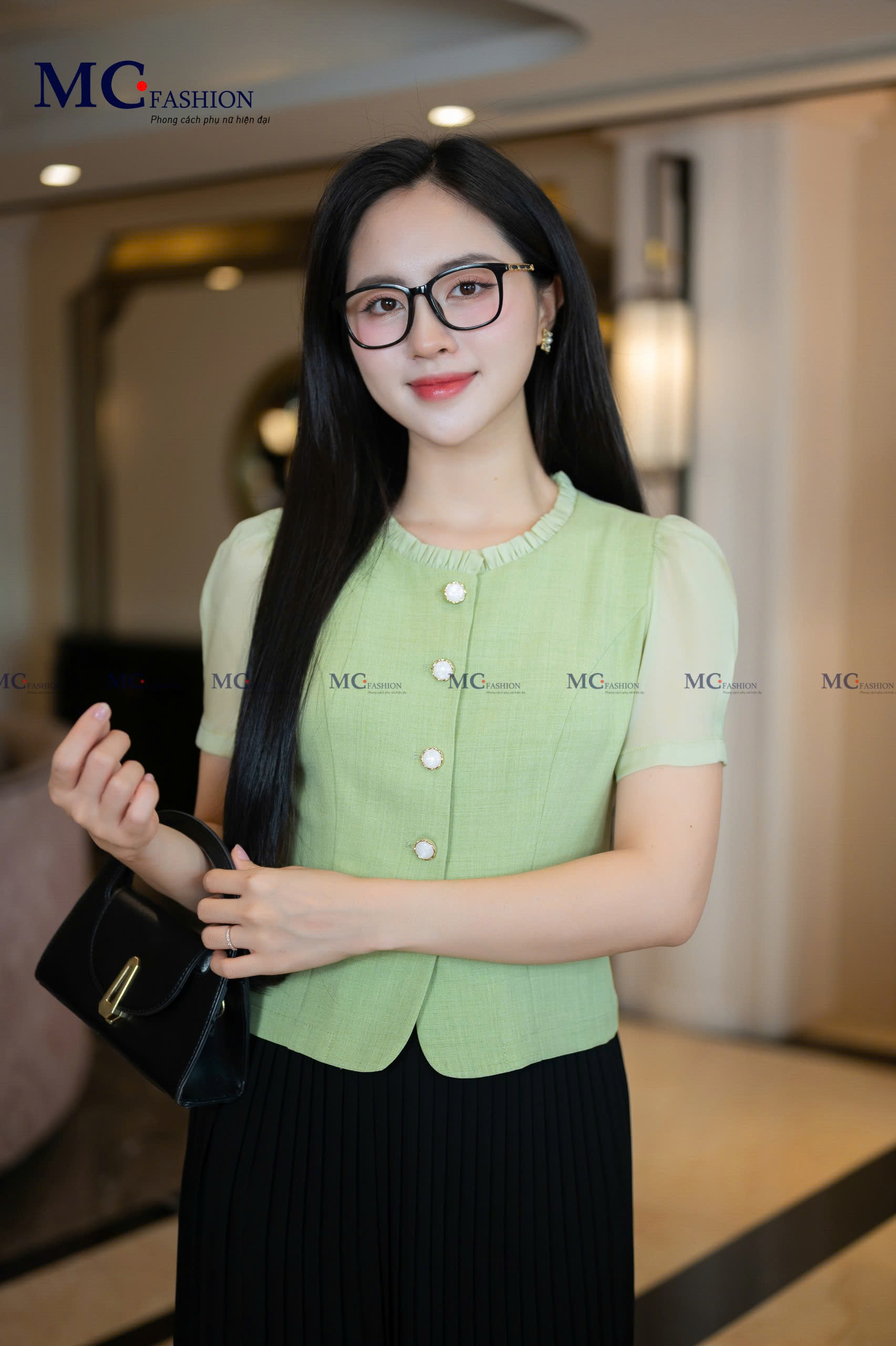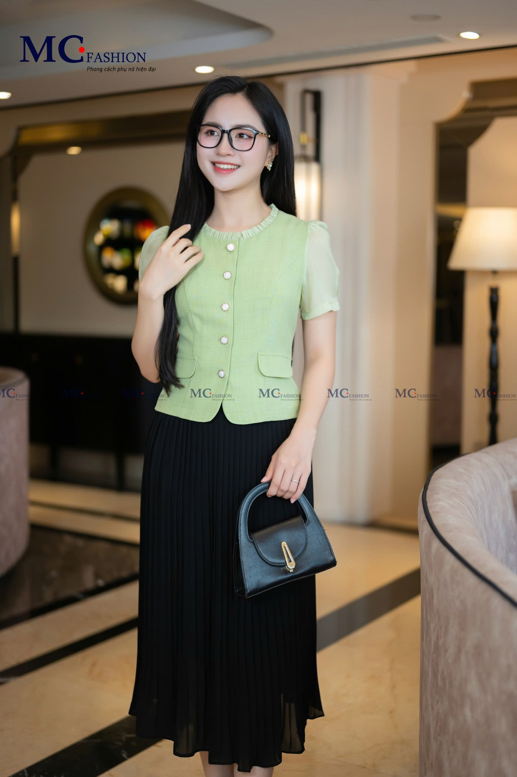 ✨ Xanh cốm nhạt: tươi mát, trẻ trung, mang lại năng lượng tích cực, là gam màu hợp xu hướng cho những nàng công sở muốn vừa thanh lịch vừa mới mẻ.