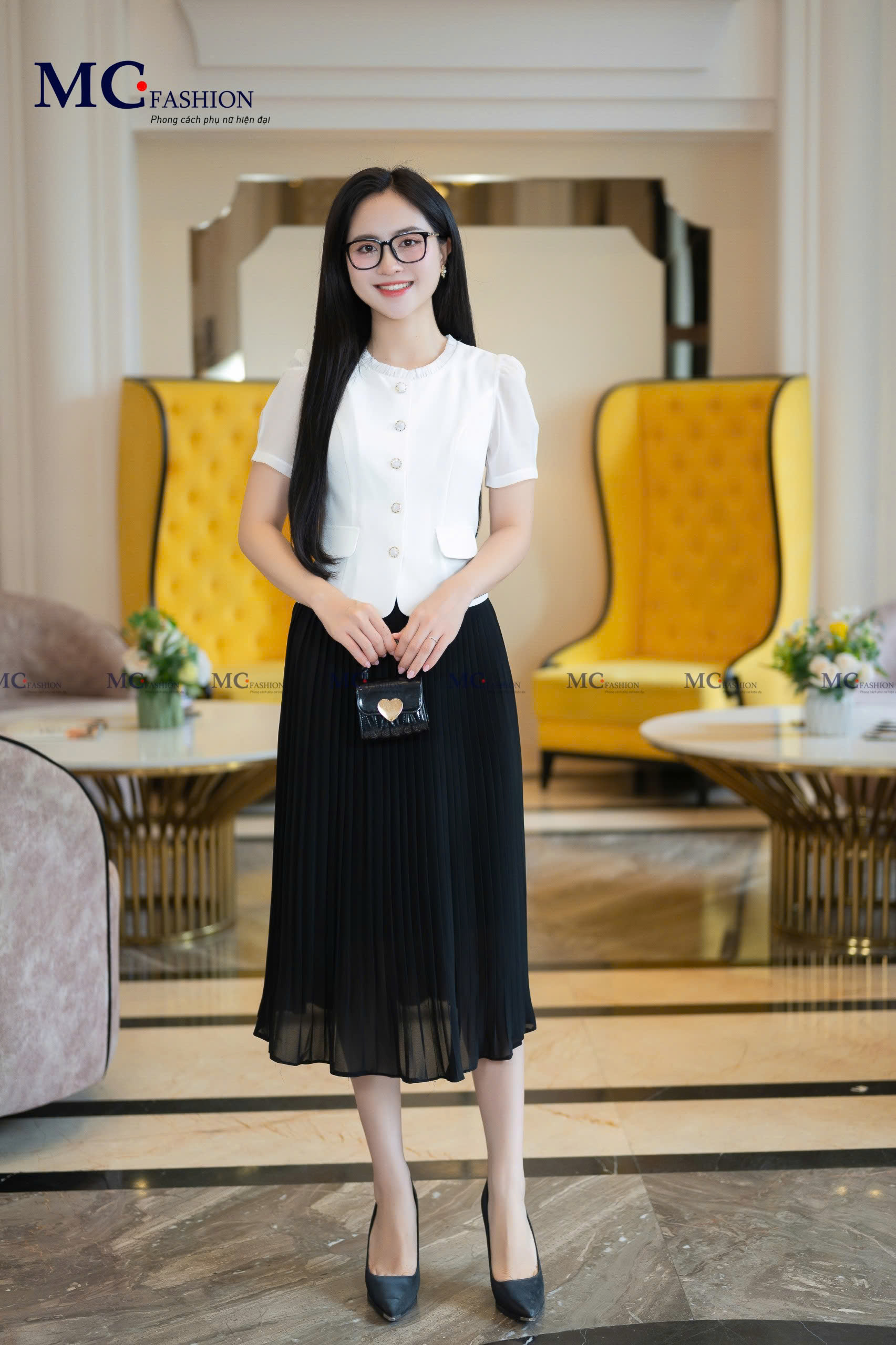✨ Trắng tinh khôi: biểu tượng của sự sang trọng, chuẩn mực, cực kỳ dễ phối đồ – từ chân váy đen, quần âu đến váy xếp ly.