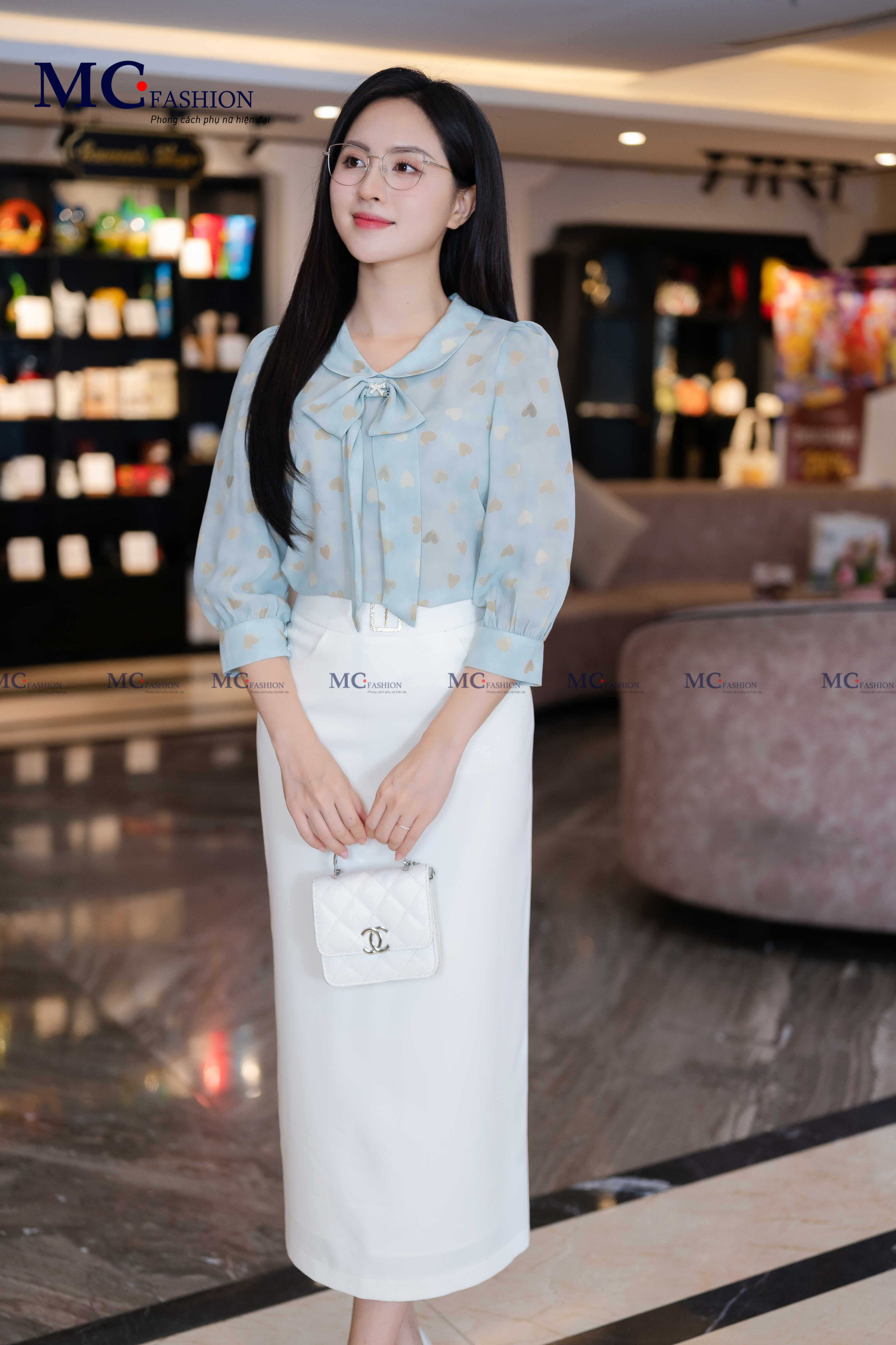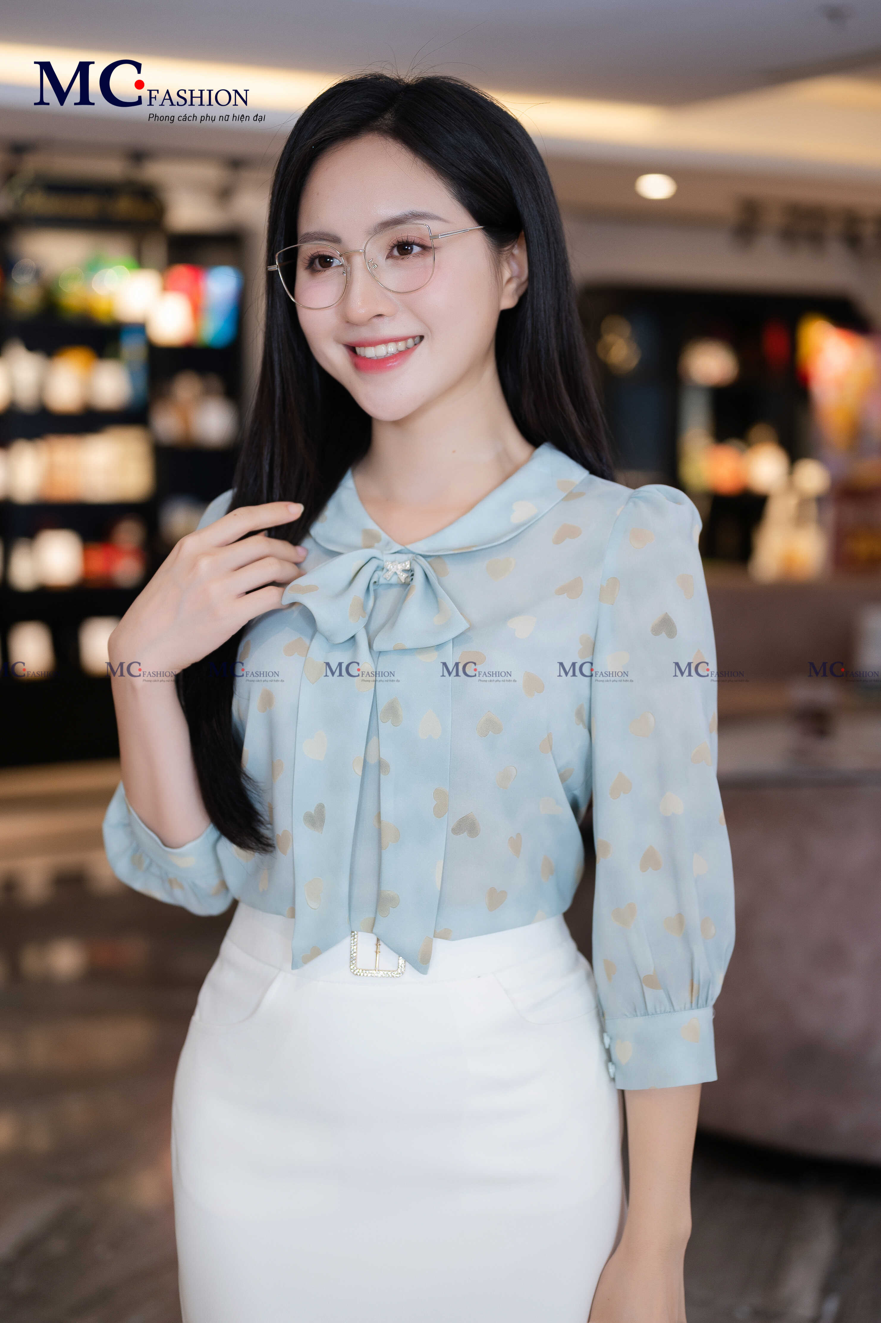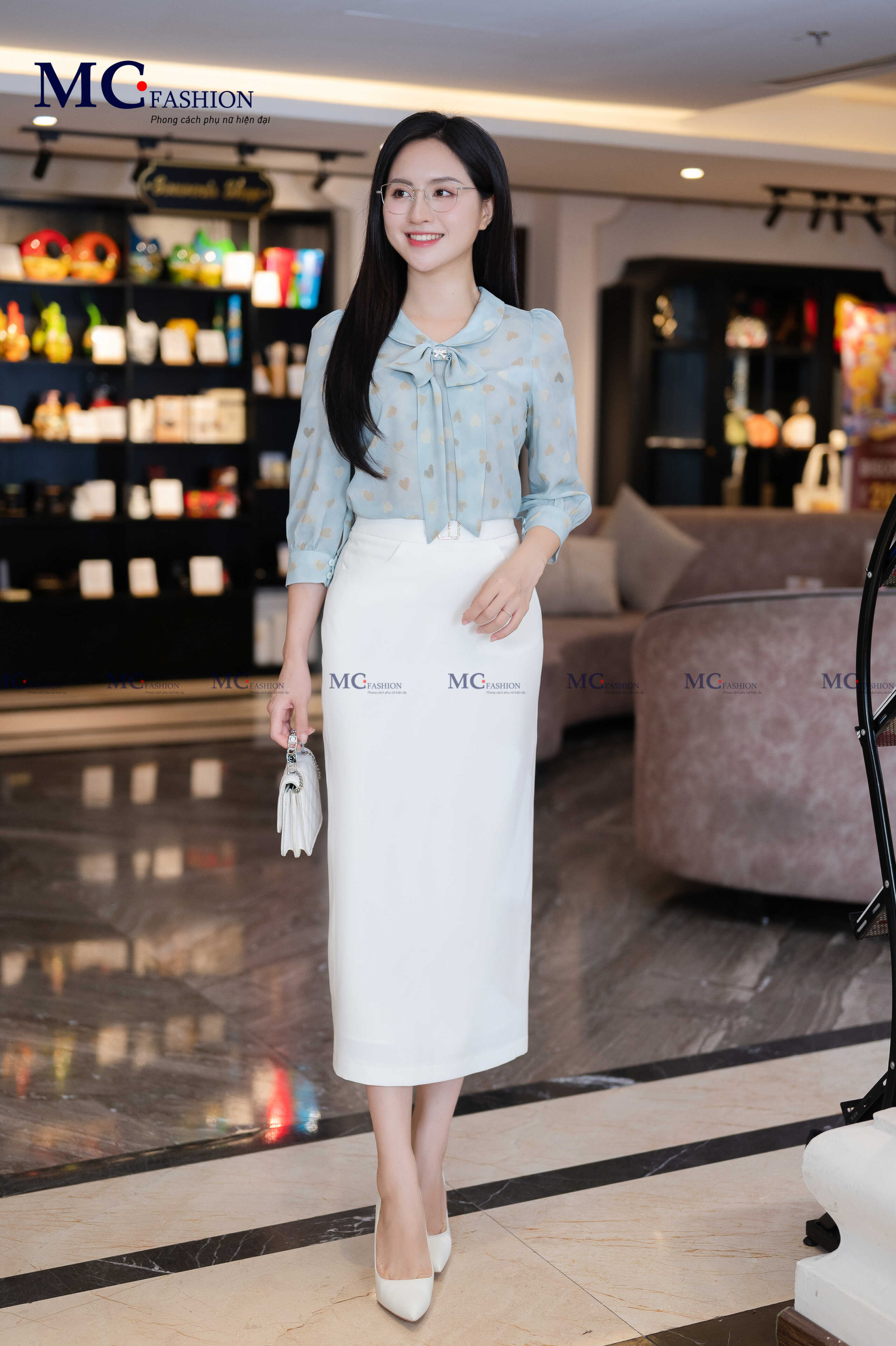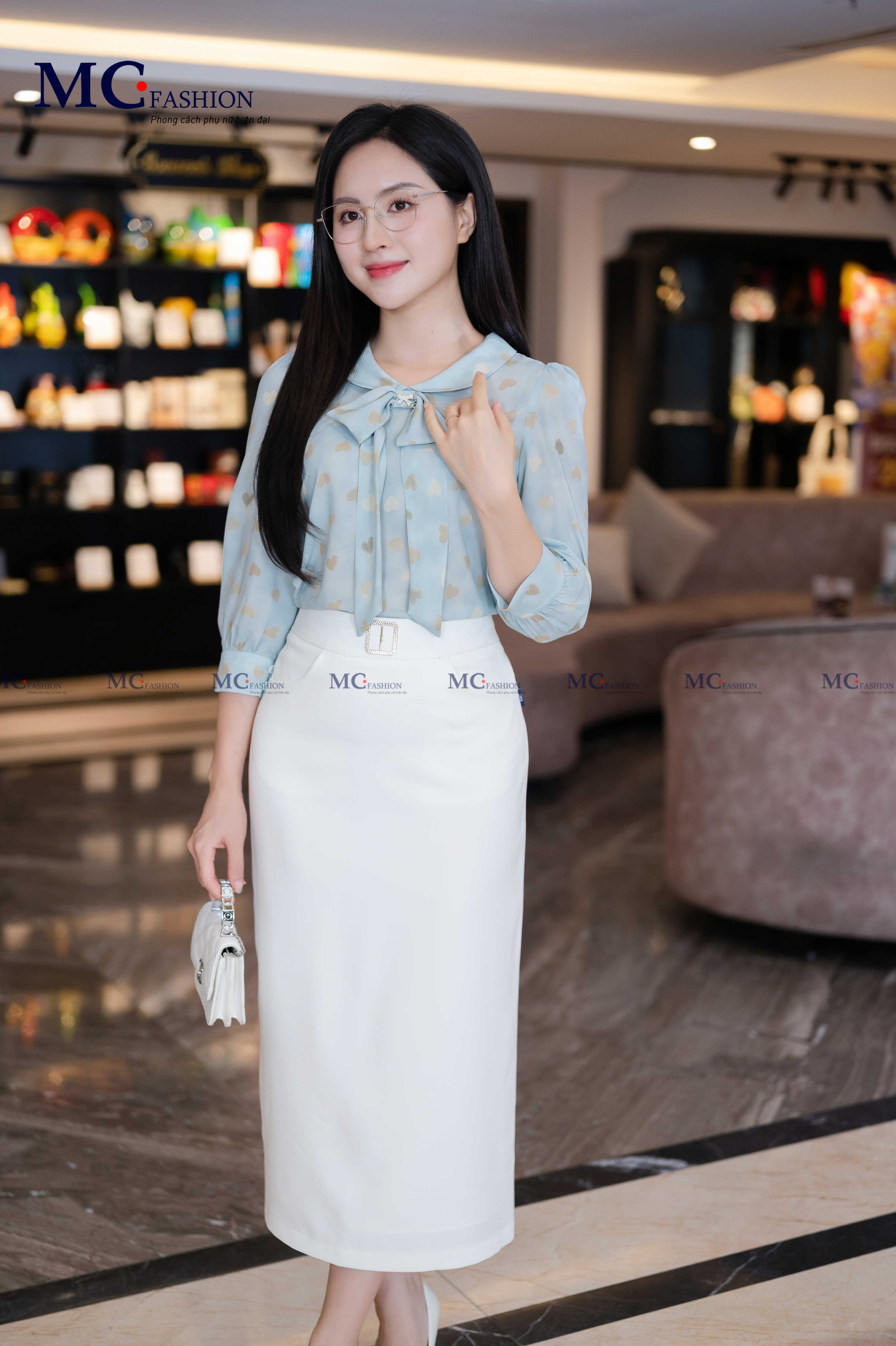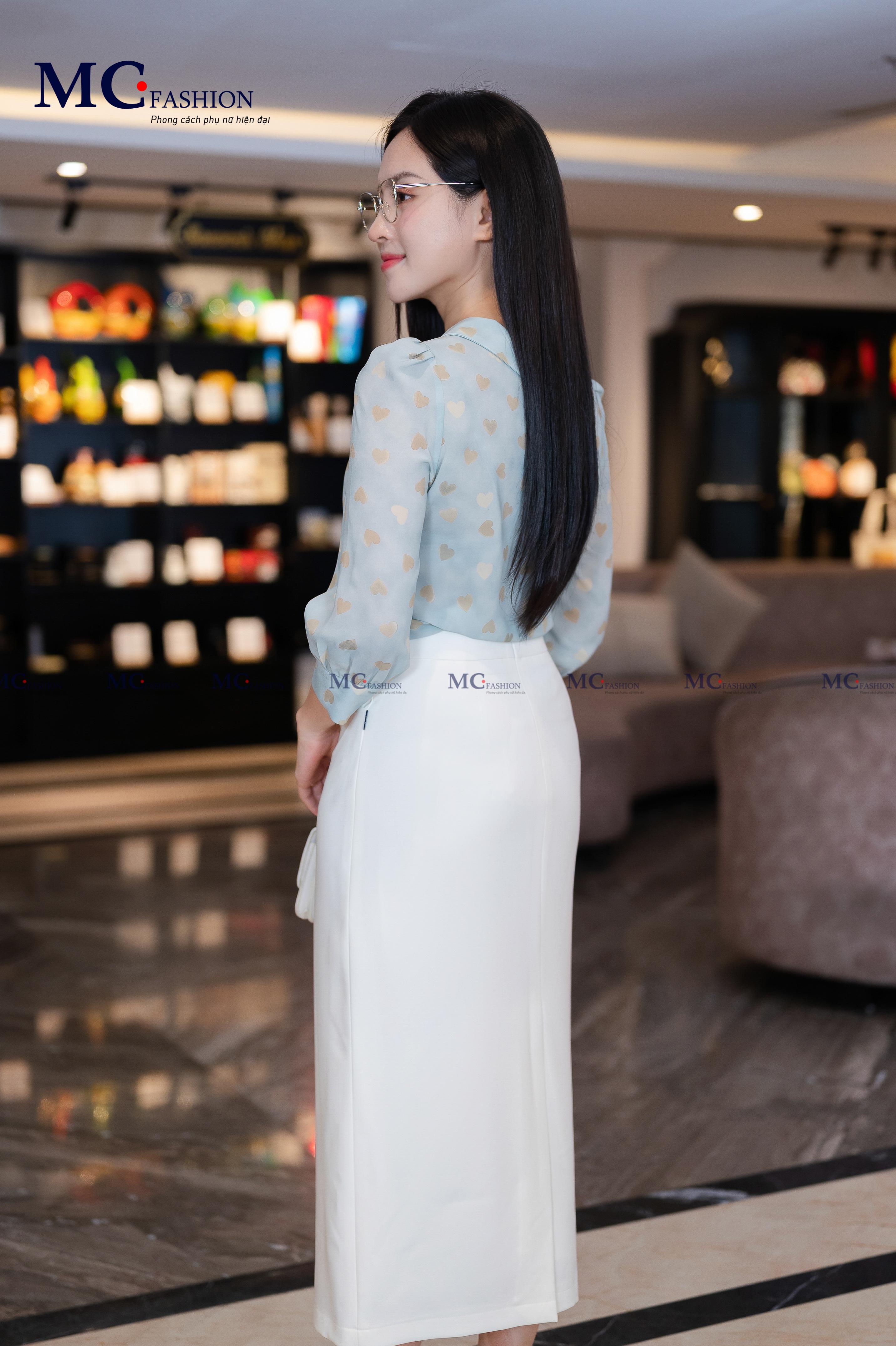 • Form dáng: Áo dáng suông vừa phải, dễ phối cùng chân váy bút chì, quần tây hay quần ống rộng, tạo nên phong cách công sở hiện đại nhưng vẫn giữ sự mềm mại, nữ tính.